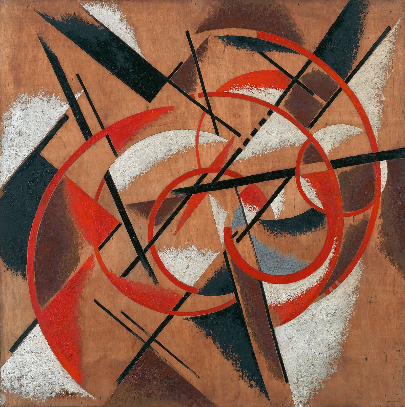 Die theoretischen Grundlagen des Konstruktivismus waren am Institut für Künstlerische Kultur, dem INChUK, entwickelt worden, das bis Anfang 1921 von Wassily Kandinsky geleitet wurde. Nach Beginn des Ersten Weltkriegs musste der Russe, der seit 1896 in Bayern gelebt hatte, das Deutsche Kaiserreich verlassen. Zurück in Moskau integrierte Kandinsky Elemente der aktuellen Kunstströmungen: Seine organische, von Chiffren durchzogene Abstraktion bereicherte er um geometrische Formen aus dem Repertoire der Suprematisten und Konstruktivisten. Doch die ideologischen Diskussionen am INChUK und der Drang zur Objektivierung der Kunst widerstrebten Kandinsky. Ende 1921 kehrte er nach Deutschland zurück.