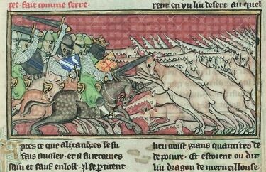 In the Persian epic Shāhnāmā (Book of Kings), the hero Prince Gushtāsp must hold his ground against a monstrous beast . . .