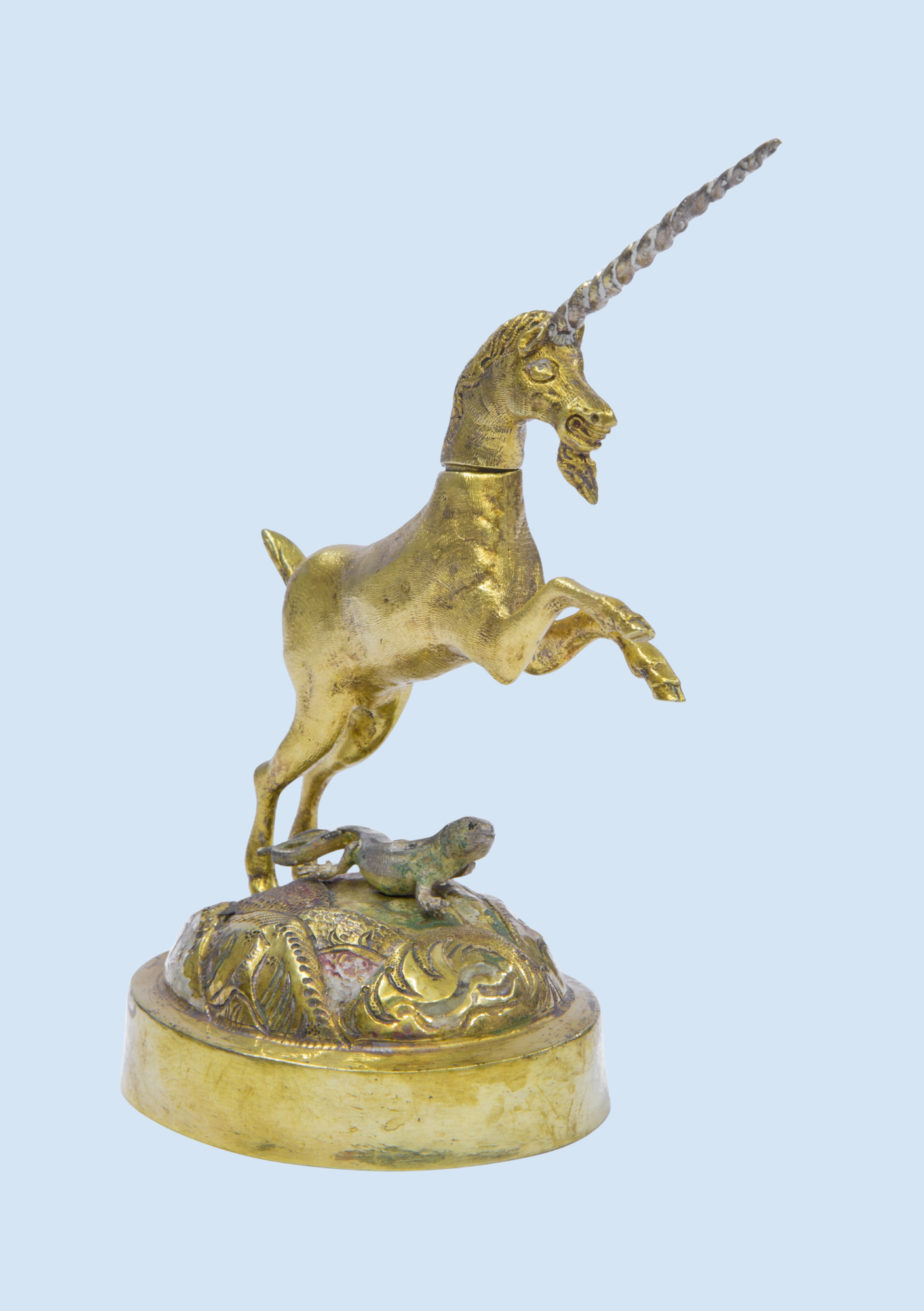 From about 1600 on, increasing numbers of apothecaries were named after the unicorn, and some still bear that title even today. Rare unicorn horn was once considered a powerful remedy for nearly every disease; its medical efficacy was emphasized already in the earliest sources. Whether for epilepsy or other incurable illnesses, it could be administered in powdered form, pulverized from “real” unicorn horn. Even Martin Luther relied on this miracle cure.