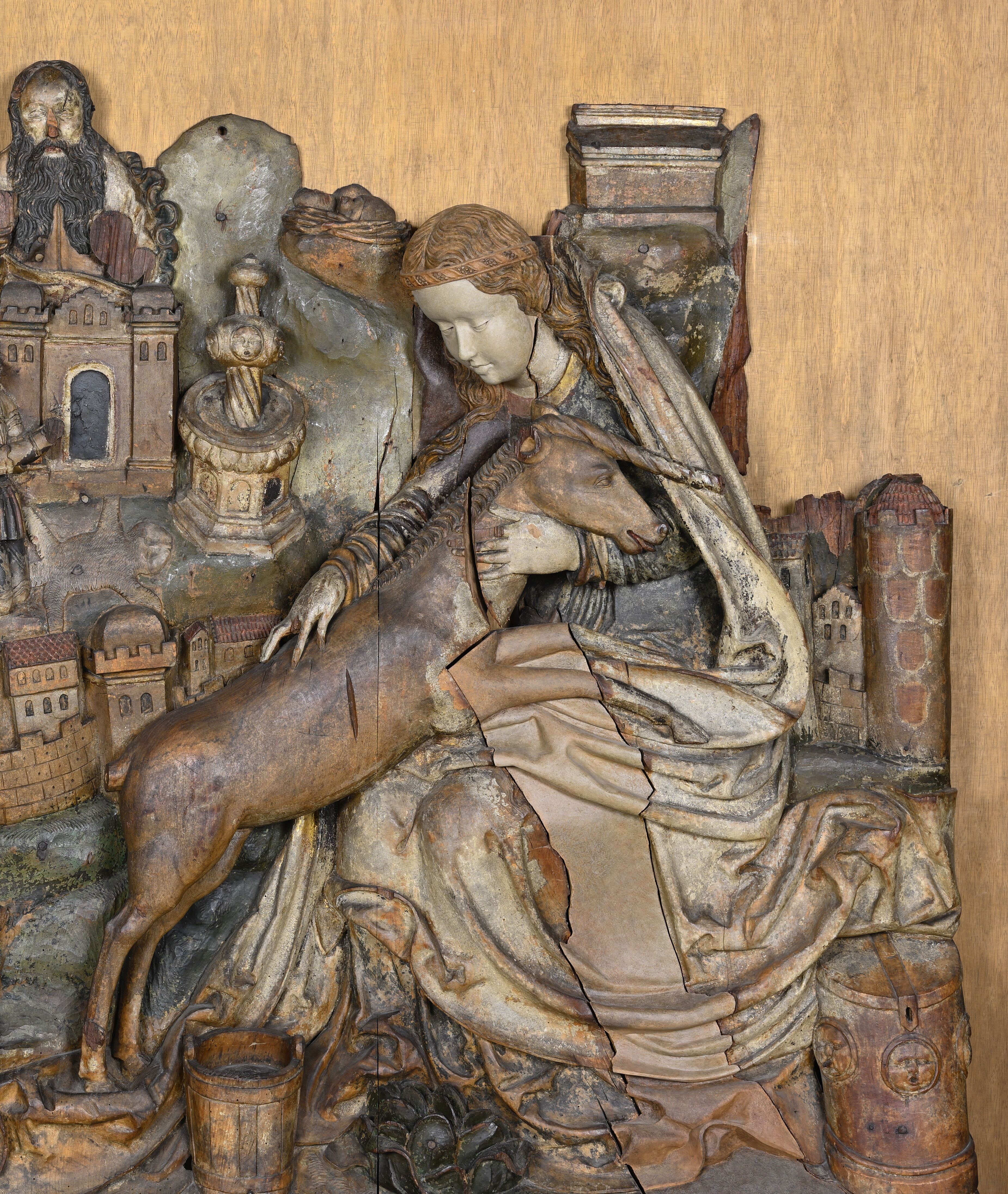 The spectrum of images extends from the Annunciation to the unicorn hunt in a hortus conclusus, an enclosed garden. These lively, detailed scenes are often charged with multiple layers of symbolism. Such depictions appealed to a broad public, but could also show considerable theological and intellectual complexity.