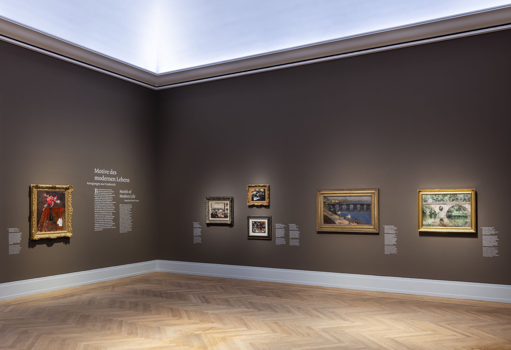 It is a bourgeois era of sprawling cities and massive factories—soon joined by automobiles and telephones—a time of sweeping modern renewal. This contemporary reality is reflected throughout the exhibition, both in its subjects and in the artists’ technique: a style at once free, sometimes improvisational, yet entirely precise.